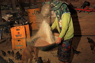 dans le village les coups sourds et réguliers des pilons à riz actionnés